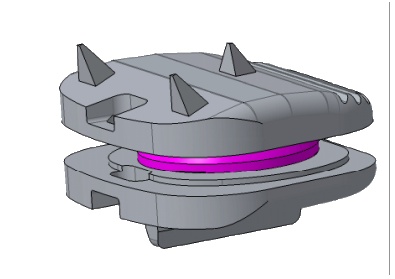 Su concepto está basado en una articulación de bola y alojamiento, anclado entre dos cuerpos vertebrales.