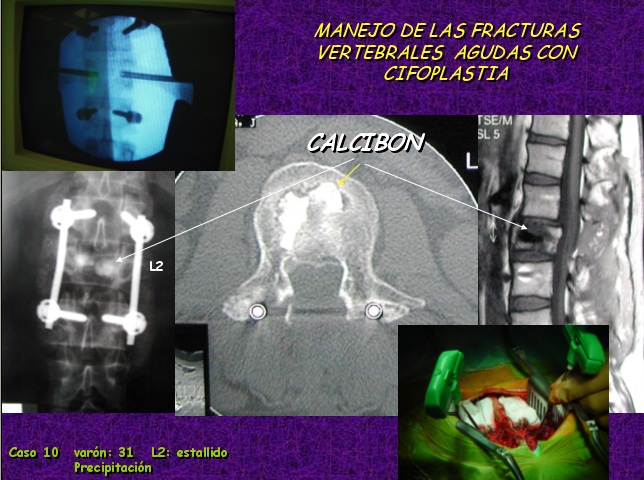 Comunicación presentada al VIII Congreso de la Sociedad Española de Neurocirugía. Alicante 14-18 de mayo de 2003. Servicio de neurocirugía. Hospital MAZ. Zaragoza) y que ofrece excelentes resultados en la reparacion de fracturas que afectan tanto a la columna anterior vertebral (soma), como el complejo ligamentario y arco posterior (para mas detalles sobre el procedimiento ver articulo en formato Word).